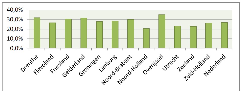 Bovendien blijkt dat er slechts een klein percentage van de tandartspraktijken na zes uur nog open is, zie grafiek hieronder. In Nederland is slechts 8,3 procent van de tandartspraktijken één avond per week na 18.00 uur nog open. In Zeeland is dat percentage het laagst van Nederland, slechts 3,8 procent.