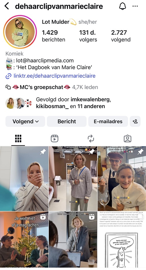 De Insta-homepage van Lot Mulders karakter Marie-Claire