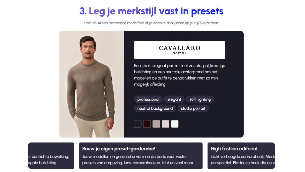 Fashion Studio vertaalt de werkwijze van de mode-industrie naar een intuïtieve interface. Marketeers kunnen levensechte digitale personages genereren die de kleding van het merk dragen, volledig aanstuurbaar via gedetailleerde fotografie-instructies. Volgens Danny de Kruijk, product lead bij Brainvine, onderstreept dit een belangrijke verschuiving. ‘Dit werkt in bulk, het hele jaar door. Je krijgt producties in handen die normaal tonnen kosten.’ Kleinere merken krijgen zo toegang tot een uitstraling die eerder alleen voor high-end labels was weggelegd.