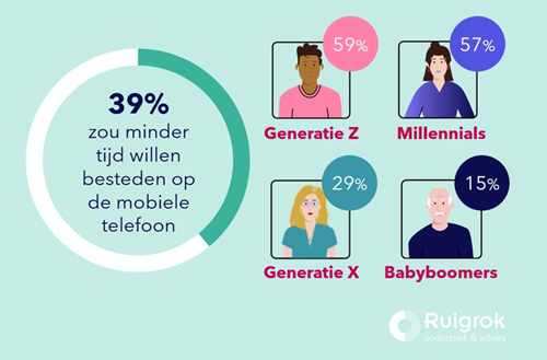 Smartphone- en socialmediagebruik staan onder druk, vooral bij jongeren blijkt ook uit onderzoek in Villamedia (25/11/’25): 59% van Gen Z zou zijn schermtijd willen beperken. Veel jongeren zetten notificaties uit, stellen tijdslimieten in of plannen bewust pauzes om beter offline te komen, maar slechts 18% lukt het dagelijks om de telefoon even weg te leggen. Belangrijke motivaties zijn rust en mentale gezondheid, terwijl social media onmisbaar blijven.
