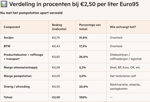 De verwachte omzet van alle brandstof in 2026 ligt op 11 miljard liter en daarmee qua omzet tussen de 25 en 30 miljard euro. Een geweldige inkomstenbron voor de overheid van zo’n 13-15 miljard.