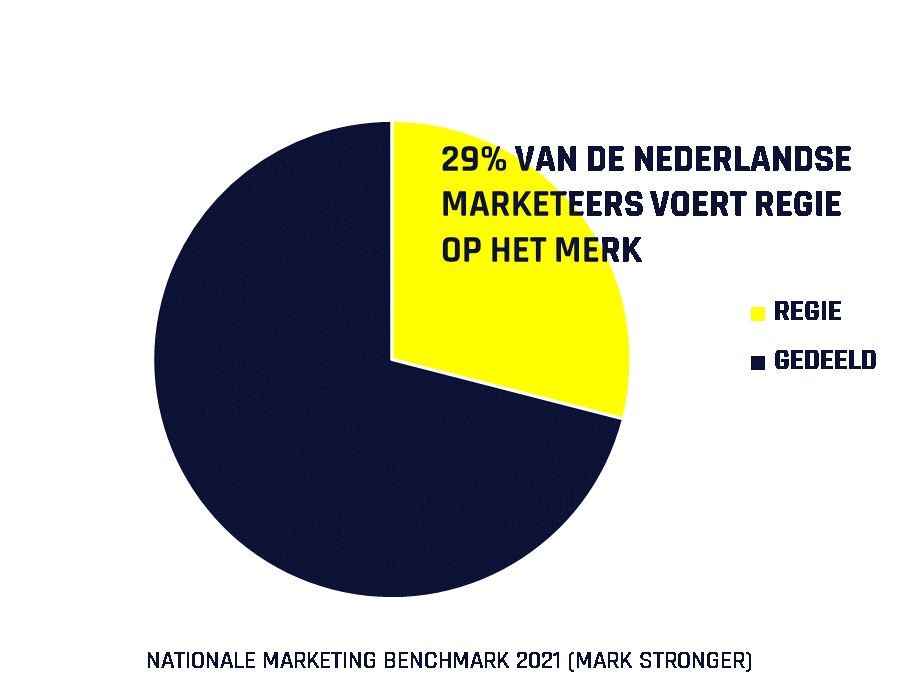 Een van de eerste opvallende uitkomsten uit de benchmark is dat veel marketeers de regie op marketing en merk overlaten een extern bureau. Dat gebeurt bij ongeveer een op de zeven bedrijven. Maar een derde van de bedrijven voert wel zelf regie. Jansen: ‘Regie voeren betekent dat marketeers zelf, vanuit een duidelijke visie en strategie, bureaus en andere specialisten aansturen die de marketingstrategie moeten helpen realiseren. Vergelijk het met het coachen van een sportteam. Een coach stelt zelf zijn beste spelers op, vertelt zelf wat hij van hen verwacht en stuurt zelf bij als de wedstrijd niet lekker loopt. Daar huur je ook geen stand-in voor in.’