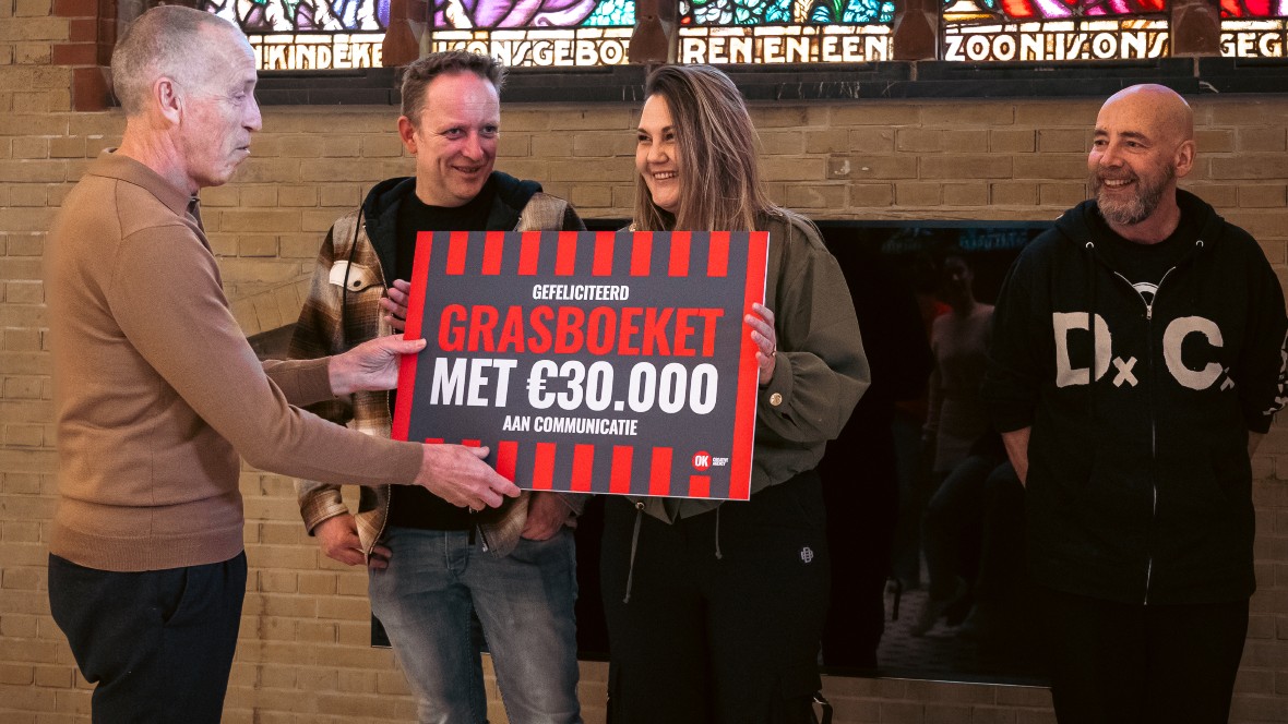 Die stap wordt de komende maanden concreet ingevuld. ‘Het team van OK Creative Agency gaat nu samen met Grasboeket een slimme en impactvolle aanpak ontwikkelen om deze winnende start-up de beste businessboost ooit te geven’, stelt Hoogeveen De wereld hoort dus snel meer van Grasboeket. Of, zoals Böhmer zelf zegt terwijl ze de cheque in ontvangst neemt. ‘Ik kan best eigenwijs zijn. Dan zit ik helemaal in mijn idee en denk ik: dit moet gewoon. Het is dan goed dat er iemand naast me staat die zegt: kom op, dit is leuk, maar hoe gaan we dit verkopen? Dat is wel belangrijk.’