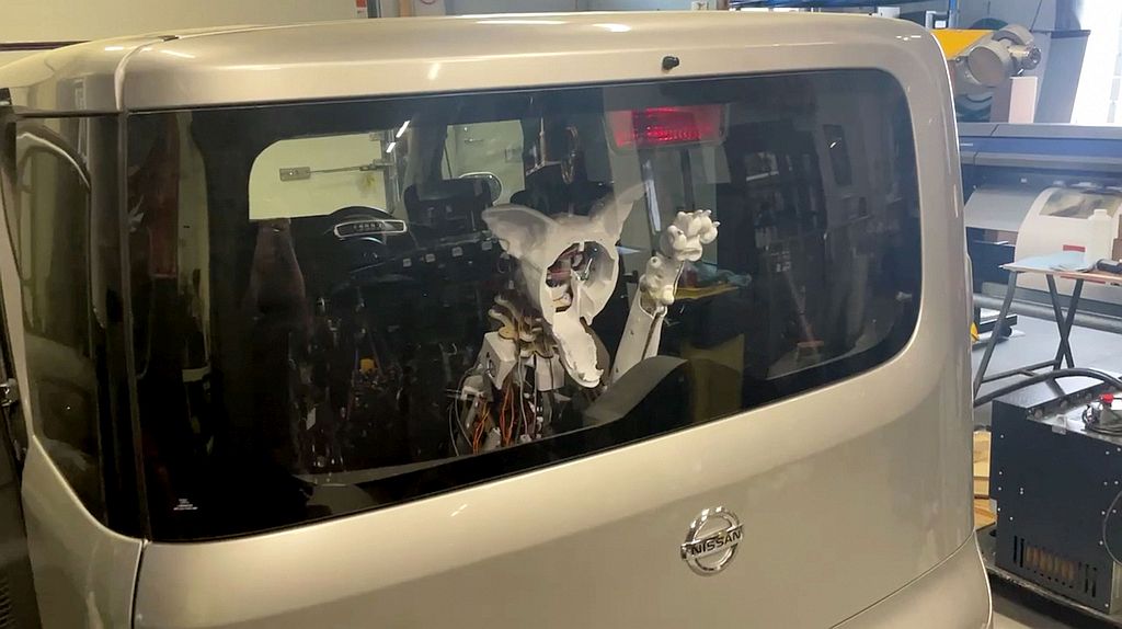 De robot is gebouwd met behulp van 3D-geprinte onderdelen, nep-bont en mechatronica. De vooraf geprogrammeerde bewegingen van de hond simuleren symptomen van een hitteberoerte en worden geactiveerd door warmtesensoren in de auto.
