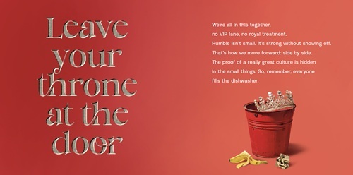 Er werd een helder en speels cultuurdocument ontwikkeld dat de mentaliteit van het bedrijf vangt. Geen abstracte kernwaarden of obligate managementtaal, maar negen aanstekelijke en herkenbare manieren van werken, die medewerkers dagelijks kunnen gebruiken, adus de makers.