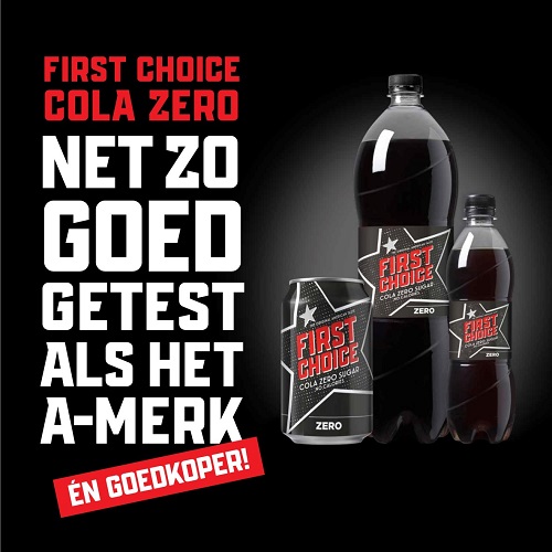 First Choice Cola Zero, het challenger brand van Superunie, is net zo goed getest als 'de bekende A-merkvariant'. Dit is de uitkomst van een blinde smaaktest onder 150 respondenten in Nederland.