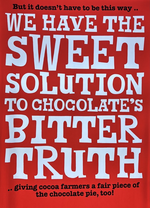 Het sourcingmodel van Tony’s, gebaseerd op vijf principes, komt meerdere keren ter sprake. Het garandeert onder meer een leefbaar inkomen, directe inkoop, langdurige relaties en transparante ketens. Ama Mogyabun uit Ghana vertelt hoe de aanpak ter plekke verschil maakt: ‘Boeren investeren nu in hun toekomst, omdat ze weten dat hun oogst eerlijk wordt betaald.’