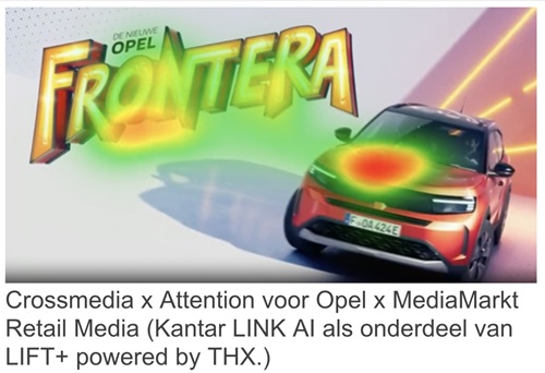 'De introductiecampagne van de Opel Frontera is daarvan een duidelijk voorbeeld. Opel, MediaMarkt en Publicis Media brachten een echte auto, point-of-sale-materialen en digitale schermen naar meer dan 50 winkels. Het initiatief, gemeten door MeMo² (a Kantar company), leverde substantieel aanvullend bereik op en versterkte zowel de merk- als lange-termijndoelstellingen van Opel.' Het trackte voor de gelegenheid de hele campagne.