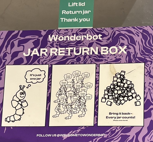 De maaltijden worden dagelijks aangevuld en via een retourbox worden de glazen potten opnieuw gebruikt, wat het circulaire karakter van het concept onderstreept. Meer informatie is te vinden via Alexinwonderland.