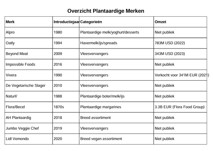 Weliswaar waren er in de tachtiger jaren al wat vegaburgers en tofuproducten te vinden in de supermarkten, maar de echte groei kwam pas in 2015 met een sterke assortimentsuitbreiding van plantaardige producten en zuivel. Aansluitend kwamen ook de grote ijsmerken met vegan ijs. Daarmee ontstond een volwaardige productgroep. Weliswaar is Becel een behoorlijk groot en succesvol merk en al zeer lang op de markt, maar de meeste aanbieders van plantaardige producten zijn van de laatste 10-15 jaar en veel daarvan hebben moeite om winstgevend te worden. In de plantaardige markt zijn het de vleesvervangers die de laatste jaren het meest innovatief zijn en aan de weg timmeren met hun merken.
