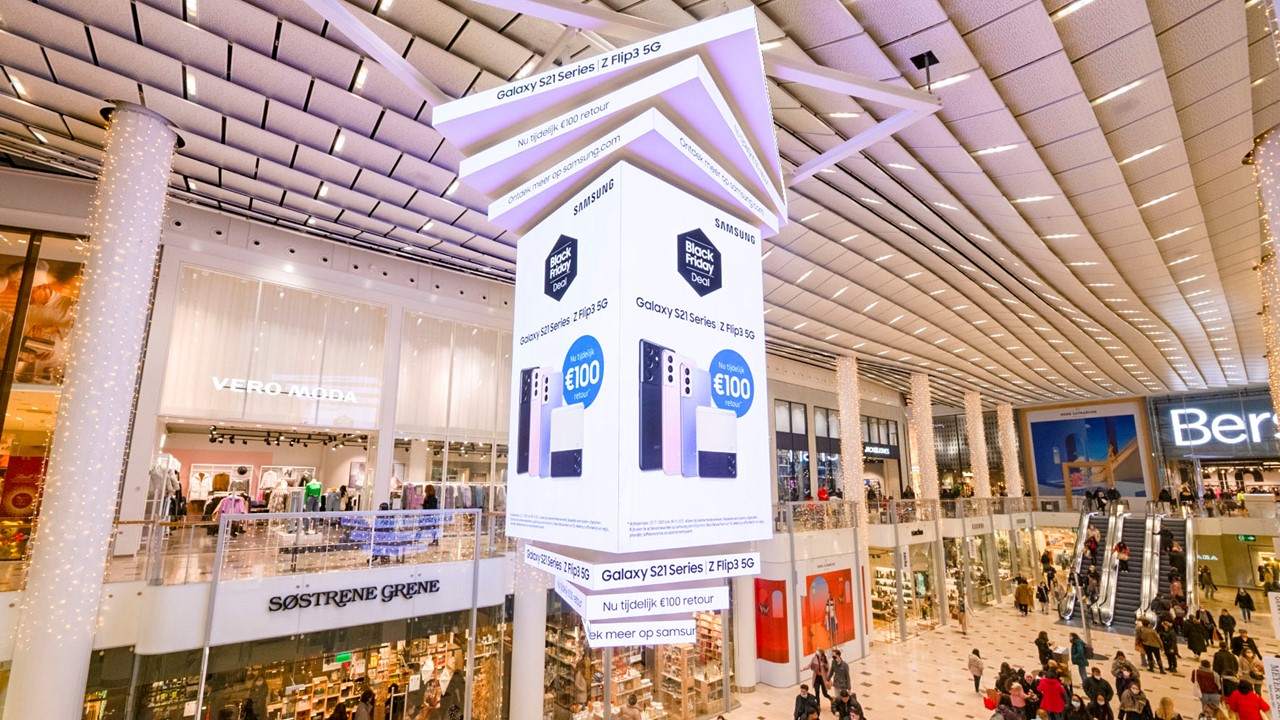 BlowUP media lanceert in Utrecht, Hoog Catharijne een nieuwe vorm van ledscherm. The Emerald is een grootformaat vierzijdig scherm van bijna 60 m2 dat vanuit het plafond in het shoppingcenter naar beneden komt.
